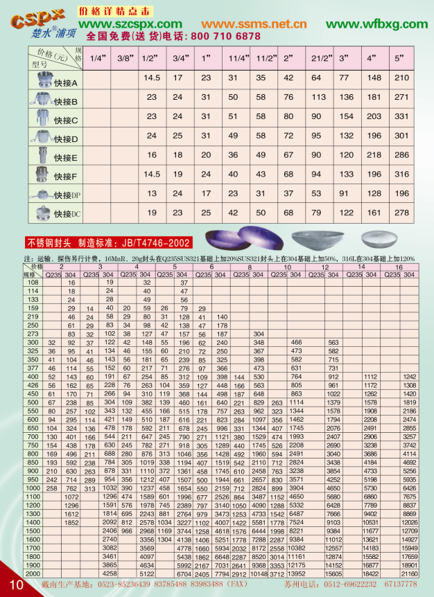 不锈钢快速接头封头价格